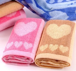 【6401-桃心色织澡巾】130克纯棉 38*90 纯棉澡巾 大三条毛巾