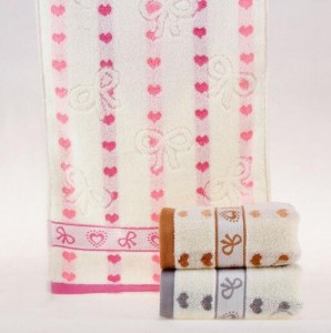 【6378-蝴蝶结爱心毛巾】厂家直销 无捻竹桃心蝴蝶结毛巾 礼品回礼毛巾 劳保商超面巾
